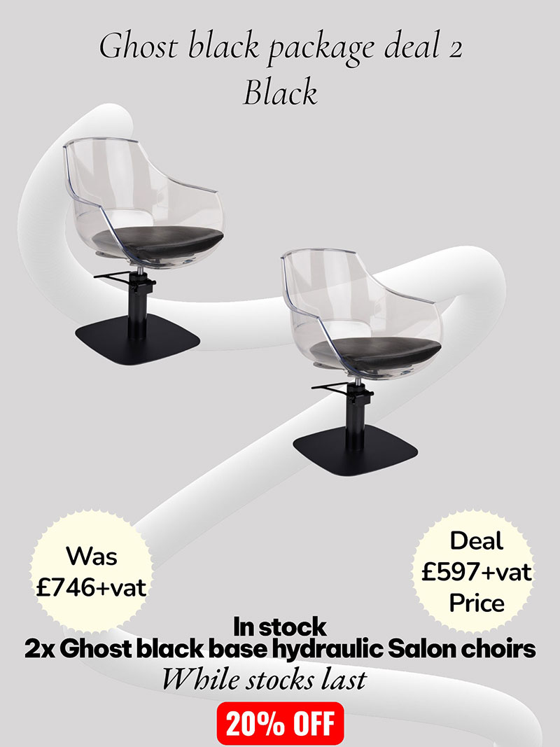 This package deal consists of x2 Ghost styling chairs, supplied by Ayala the chairs are supplied with black upholstery and black hydraulic square base. The ghost chair is supplied boxed for ease of delivery and requires some assembling before use. Nationwide delivery can be arranged and a twelve month warranty comes as standard.