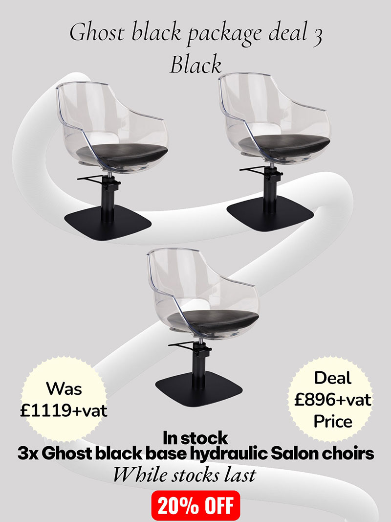 This package deal consists of x3 Ghost styling chairs, supplied by Ayala the chairs are supplied with black upholstery and black hydraulic square base. The ghost chair is supplied boxed for ease of delivery and requires some assembling before use. Nationwide delivery can be arranged and a twelve month warranty comes as standard.
