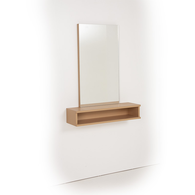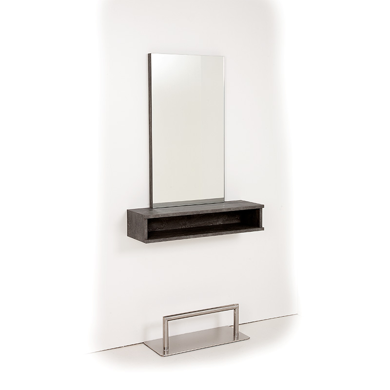 The Jaxx 800 styling unit is made to order in the UK, The double shelf is laminated in a choice of durable modern designs and is supplied with a polished edged mirror bonded onto an 18mm thick backboard edged in a matching finish for a minimalist modern look to enhance the look and feel of your salon. Shelf fixes to wall through solid 18mm back with wall mounting plates supplied for mirror for a very easy install.